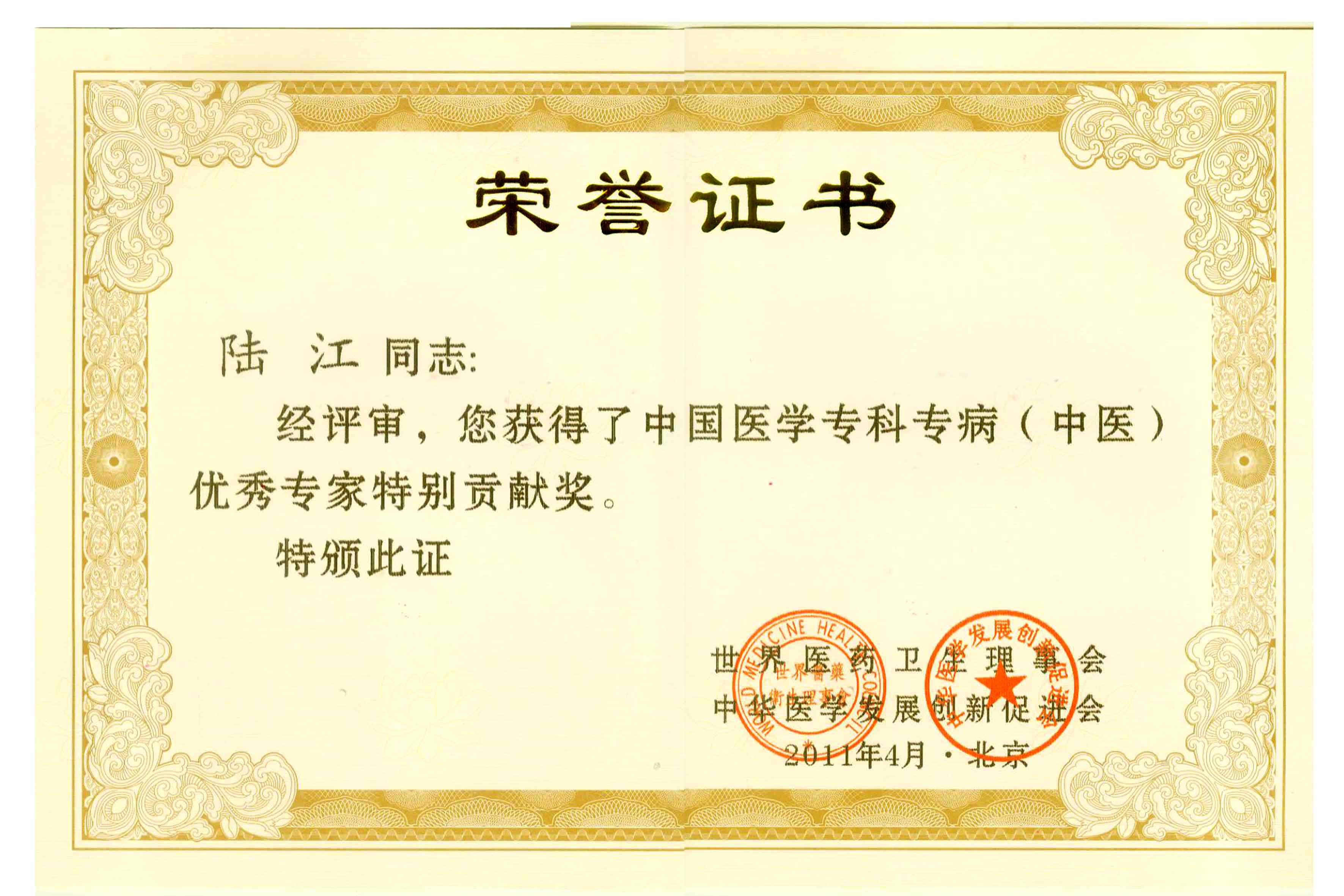 陸江獲得中國醫(yī)學(xué)專科專病優(yōu)秀專家恃別貢獻獎